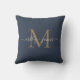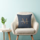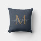 Elegant guldmonogram skriptnamn vigsel blå kudde