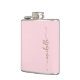 Elegant Stilren Modern Minimalist Guld Monogram Namn Skript Signatur Anpassad Personlig Rosa Flask. Har förnamn i en vacker handstils-svans font kalligrafi (eller typografi) i guld på rosa eller babyrosa färgbakgrund. Dessa är lätta att anpassa. Stor stilren feminin brudtjej-festpresent, husvärmingspresent, även för Brudtjej-fest, födelsedag, mors dag, brud shower-fest, sweet 16 födelsedagsfest, bröllop, för examensfest och Det är för tjejen som älskar unika stilrena saker.