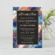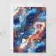 Skapa ett djärvt och hypnotiserande uttalande med denna eleganta bröllopsdesign med en livfull blå himmelsk agat-inspirerad bakgrund accentuerad med skimrande gulddetaljer. Virvlande marmorerade texturer blandar djupblått, ljust turkos, varmt bärnstensfärgat och mjukt elfenbensvitt, och frammanar en kosmisk, galaxliknande estetik. Den raffinerade guldramen och de känsliga ornamentala blomsterdetaljerna tillför tidlös sofistikation, medan spridda guldfläckar förstärker den lyxiga, stjärnlika effekten.