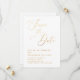 Meddela din bröllopsdag med tidlös stil med detta eleganta "Spara datum"-kort. Designat med vit bakgrund och sofistikerad typsnitt i guldstil, ger det en ren, modern utseende som passar perfekt för formella, traditionella eller minimalistiska bröllop. Den gyllene texten är en tryckt effekt, inte riktig folie, vilket ger illusionen av metallisk glans samtidigt som det håller saker enkelt och prisvärt. Helt anpassningsbart och tillgängligt som ett tryckt kort eller digital nedladdningsbar fil.