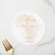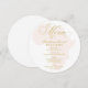Eleganta och stilrena runda menykort för bröllopsmiddag med vacker guldfärgad text och en blek rosé/rose gold färgad kontinent Afrika siluett design i bakgrunden.