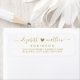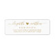 Eleganta, moderna guld- och vitfärgade handskrivna par returadressetiketter. Med en vacker handskriven skriptmall för förnamn och efternamn med svansfont i svart, liten hjärtform mellan namnen på vit bakgrund. Lätt att anpassa dem med dina namn och returadressinformation.