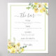 Den vackra sommareftermiddagen poster bröllop-menyn pub dekorera den ömtåliga vattenfärgen gula blommor. Trädbröllopsdryckslistan accentueras med en mjuk grönt gräns och botaniskt löv under eleganten soliga ponnyer. Blommigt och ljus, perfekt för en utomhusceremoni.