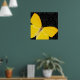 Gult-fjäril poster på en svart dammmönsterbakgrund.
