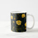 Den här vackra Mors dag mugg har en lysande vattenfärgsillustration av fet gult-knapp som ställs in mot en fet svart bakgrund och skapar en slående kontrast och elegant. Utformningen innehåller en namn-textetikett för anpassade på både framsidan och baksidan, skapar den som en hjärtlig och personlig gåva. Perfekten för Mors dag gör mugg också en tankeställare för födelsedagar, jul, Alla hjärtans dag, eller något särskilt tillfälle där ni vill visa kärlek och uppskattning. Vare sig det fylls med kaffe, te eller hett kakao är det en daglig påminnelse om värme och kärlek.
