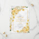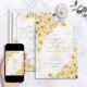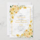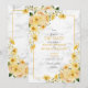 Söt och trendig. Den här lätta grått-färgen, vita bröllop spara datum-kort av blommigt-anpassningsbar, har en blommigt av gult- och champagneskal, tillsammans med botaniskt grönt. Inbjudan har också faux guld-damm, en faux Carrera marble-bakgrund och handskrivna manustypografi. Kontaktdesigner för matchande produkter. Inbjudningskort för Elegant av upphovsrätt, alla höger reserverade.