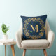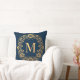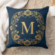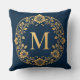 Utsmyckat gyllene blommönster omger en djärv bokstav 'M', designen är idealisk för varumärkning, inbjudningar eller dekorativa ändamål. Den rika marinblå bakgrunden förstärker dess lyxiga och klassiska utseende.