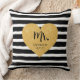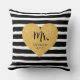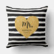 Elegant gyllene hjärta svarta ränder Nygifta Kudde