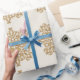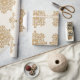 Detta vackra presentpapper är perfekt för din bröllopsgåva, årsdagspresent eller en speciell födelsedagsfirande. Denna unika design har en elegant champagnefärgad bakgrund med gyllene barockprydnader i ett upprepat mönster.