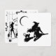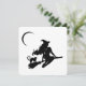 Framsida: Elegant häxa & hennes katt & kvast silhuett Baksida: Snygga häxor, dinglande spindlar, kusliga pumpor, skrämmande katter & trolldryckspot Anpassningsbara Ord: "Ha en Förtrollande God Tid!" "hos oss" "Öl & Boo-fest" "Datum/Tid" "Adress"