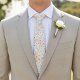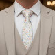 Unik halsduk med ett charmigt, modernt franskt shabby chic-mönster. Den visar en botanisk blomsterdesign med vackert arrangerade pastellrosa rosor, ljusblå prästkragar, soliga gula blommor och salvia gröna blad, alla mot en vit bakgrund. Unik, söt, dekorativ, modern och trendig design för den professionella och sofistikerade affärsmannen.
