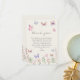 Han ger mig fjärilar! Denna eleganta bröllopsdusch-inbjudan har ett fjärilstema med vattenfärgsträdgårdsblommor. De vackra vattenfärgsfjärilarna är i vackra nyanser av rosa, lila, korallrosa och babyblått.