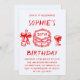 The clean white background and bold red typography create a stylish, contemporary look that works beautifully for both intimate gatherings and lively celebrations. Easily personalize the name, age, date, time, location, and RSVP details to fit your event.