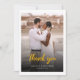 Ett underbart och tankeväckande sätt att tacka dina vänner, familj och medarbetare som tackade dig för deras närvaro i din bröllopsdag med det här moderna fototacket som du kortar med skript, handskrivet "tack" för guld. Foton på både framsidan och baksidan av detta kort.