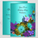 Elegant för inbjudan till Födelsedagsfest Händelse Party Teal Blue Lila Guld Flowers Blommigt Trim