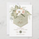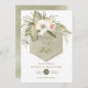 Lägg märke till bröllop med det vackra Spara datumkortet med torkade tropiska grönska med banan- och handflatan-löv, vita orkidéer och persikofrukt med orange. Elegantens geometriska ram i djup grönt och moderna, handskrivna kalligrafidetaljer. Tillbaka i djup grönt som kan ändras till vit eller annan ton om du vill genom att välja att anpassa ytterligare. En del av vår insamling av Gröntar för Blommigt av Löv i Handflatan med en rad olika samordningsprodukter tillgängliga.