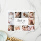 En vacker, modern och elegant perfekt med kvadratiska fotostötfångare för att tacka dina babyduschgäster för gåvor, kärlek och support. Den moderna designen har en kollage med 10 kvadratbilder av anpassaden. I mitten finns ett "tack"-meddelande i ett chic-handskript och baby namn och födelsedatum, i elegantens klassiska skrift. På baksidan visas anpassadets tackmeddelande i klassiskt teckensnitt. Med hjälp av "personalisering" kan du ersätta bilderna och ändra texten.