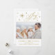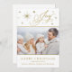 Skicka vackra familjehälsningar med detta eleganta blå och silver julkort. Detta kort har vacker handskriven Glädje i guld, omgiven av guld- och silverstjärnor. Lägg enkelt till ditt familjefoto eller nyhetsfoto för bebis i stället för standardfotot, för en personlig touch.