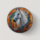 Färgrik glasmålning som avbildar en majestätisk häst med yppig man, fångar ljus och detaljer vackert. En blandning av blå och gyllene toner ger dynamik och elegans till kompositionen.