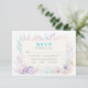 Detta eleganta svars kort har mjuka pastellfärger i mint och lavendel, som smälter samman med charmiga illustrationer av snigelskal, korallrev och sjöstjärnor och skapar en perfekt miljö för ditt speciella tillfälle.