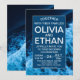 Denna moderna marinblåa inbjudan är perfekt för en kryssnings- eller strandlinje, bröllop efter party, pension, studenten eller lycklig, eller förlovningsfest. Den enkla utformningen har ett vackert sjölandskap, havets vinkara, havslevande djur och färgstarka rev.