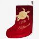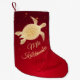 Denna moderna hawaiiska julstock har en stamsköldpadda från guld och en "Mele Kalikimaka" hälsning i ett elegant-skript.