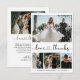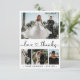 Modern, Elegant skript Bröllop 4 Photo - tack för ditt kort i svartvitt. Minimalistisk, bröllop-kortmall av snyggt med fyra (4) rasterfotokollage på framsidan och ett (1) foto på baksidan. "Kärlek och tack" text i ett handskrivet kalligrafi, söt hjärtstillestånd svan. Lägg till ditt namn och tack. Om du behöver hjälp eller matcha objekt kontaktar du designern!