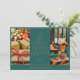 Julkortet kombinerar en elegant med ett varmt budskap. Den mörk grönt bakgrunden skapar en mysigt atmosfär, medan det snyggt guld-typsnittet tillför en aning lyxfärg. Framsidan är försedd med fotografier som förmedlar den festliga andan, och budskapet "Vi önskar dig en God jul" är framtaget i ett unikt handskrivet stil, ge kortet speciellt. Inuti, ett milt budskap i ett klassiskt typsnitt i brunt, på en lätt bakgrund med ett tunt gräns, betonar allt detta känslan av sofistikering och gör kortets perfekt för semesterhälsningar.