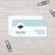 En modern och elegant visitkortsmall. I designen visas ett himmel-blått sidhuvud och sidfot med tunt vitt rand. Den visar en anteckningsboksbild som kan ersättas av vilken annan bild eller logotyp du vill ha. Namn och webbplatsen som på den lämnat sidan innehåller alla kontaktuppgifter på högerna. Ett professionell affärskort med rent ljus utseende.
