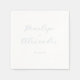 Denna servett-design för bröllop har en minimalistisk och elegant layout med namn skrivna i flytande kursiv stil, kompletterad med ett enkelt sans-serif-teckensnitt för datumet. Färgpaletten består av mjuka, ljusblå nyanser på en enfärgad vit bakgrund, vilket skapar en lugn och sofistikerad stämning. Typografin är modern men tidlös och betonar elegans och enkelhet, vilket gör den perfekt för formella tillfällen där återhållen elegans är önskvärd.