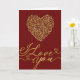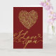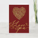 Denna eleganta gyllene ros hjärtformade "Jag älskar dig" design har ett lyxigt hjärta gjort av rosor i kombination med flödande guldkalligrafi på en rik burgunderfärgad bakgrund. Den graciösa skriften och mjuka hjärtaccenter skapar en tidlös och romantisk look som vackert uttrycker kärlek och tillgivenhet.