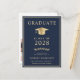 Elegant mörk marinblå universitets examensannonsering postkort med en guld examensmössa och modern guld typografi för examen kandidatens namn, examensår, universitet eller högskola, examen och huvudämne eller utmärkelser. På baksidan kan du lägga till ett foto och anpassa ett meddelande, eller lämna tomt.