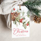 Rustiska och elegant märkre i helgdag som innehåller målade röda hollbär och pinekonomer med lush grönt löv. "God jul" visas i ett festive red calligraphy-skript med det namn eller den anpassningsbar som visas nedan.