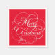Den här pappra julnapkin har ett vackert kalligrafiskt God jul-meddelande omgivet av dekorativa snurrar. En fläck med bär ger en festlig beröring.