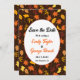 Den här eleganten faller bröllopet, förutom datumet då inbjudan är perfekt för ett modernt höstbröllop. Den enkla designen har höst löv elegant svart och orange typografi på vit bakgrund.