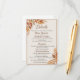 Fyll i din bröllop-svit med det här boendekortet för högskolebröllop, designat för att perfekt matcha dina höstinbjudningar. Med handmålade vattenfärgade löv i rik av orange, rött, gult och sage-grönt, framtagna av ett tunt, rustiskt brunt gräns, visar det här kortet både elegans och säsong charm. De redigerbara skriptrubrikerna för koppar ("Information", "Mottagning", "Bostäder") är utmärkta med ett tidlöst seriif-teckensnitt som garanterar tydlighet och sofistikering. Gästerna kommer att få all nödvändig information - från ceremoni och mottagningsinformation till hotellrum och bröllop webbplats - presenterad i ett stil som är lika spännande som din stora dag. Det här kortet är perfekt för fallbröllop, rustik firande eller elegant land, och är helt anpassade. Det skapar det lätt att samordna med hela din bröllop-kontorssvit.
