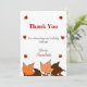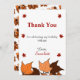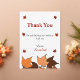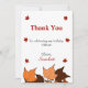 Det här elegantens födelsedagskalas tackkort är perfekt för en modern höstfödelsedag. De enkla designfunktionerna som faller i löv med elegant svart och röd typografi på vit bakgrund.