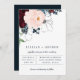 Elegant rosabränd, burgunderröd, marinblå akvarell och konstnärlig koltecknad blomsterarrangemang, bröllopsinbjudan. Modern och chic marinblå typsnittsdesign. Baksidan av kortet har enfärgad färg som visas i marinblå.