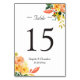 Elegant höstbrun persiko blomsterbröllops bordskor bordsnummer