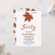 Den här elegantens födelsedagsinbjudan är perfekt för en modern höstfödelsedag. Den enkla designen har orange höst löv med elegant svart och orange typografi på vit bakgrund.
