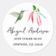 Elegant-dekal med en ruby-throated Hummingbird och en blomma. Teckensnittet stil, storlekt teckensnitt och färg kan ändras. Lägg till ett personligt tryck på kuvert, paket och brev. Formgivningen kan också överföras till andra produkter. Den hummingbird-bilden togs från originalteckningen av Christiane Dobbins.