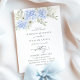 Inbjudan dina gäster i stil med den här romantiska blommigtens bröllopsinbjudan, med en delikat vattenfärgsvädrasymme och elegant typografi. Den mjuka blå blommigten i ramar parets namn är utmärkt och skapar ett tidlöst och sofistikerat utseende. Perfekt för trädgårdsbröllop, vår firande eller andra evenemang med blommigt eller rustika tema.