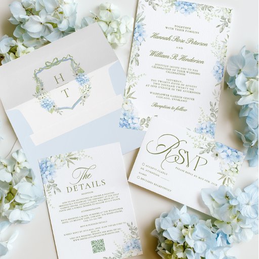 Elegant Hydrangea Floral Wedding Invitation Inbjudningar