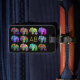 Den här sofistikerade märkrn för resor har parad av vackert färgad, prydnadselefanter som varierar i livlighet och nyans och skiner mot svart bakgrund.