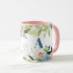 Trendig chic botaniskt blommigt kaffe av mugg med skifferblått och rosa av ro med grönt löv och löv, handdragen grenar och ett elegant av blått typografi med monogram/ namn initialt. ++++++++++++++ Enkel att anpassa med brev! +++++++++++++ Kan vara en söt som passar för evenemangsplanerare, blomsterarbetare, landskapsvårdsföretag, trädgårdskonstruktörer, insida-dekoratörer, boutikägare, butikschefer, skönhetssalonadministratörer, makeup artists, beautister, kosmetologer, hårstilsningstekniker, bloggare för livsstilar, personliga stilar!