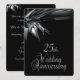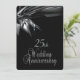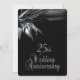 Unika svarta inbjudningar till 25-års bröllopsfirande / fest. Svart framsida och baksida med silvertext på baksidan ger en elegant look till denna kostnadsfria jubileumsinbjudan.