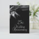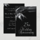 Unika svarta bröllopsjubileums inbjudningar för en 25-års bröllopsfest / fest. Svart fram- och baksida med silvertext på baksidan ger en elegant look till denna kostnadsfria jubileums inbjudan.