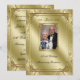 En Digitalbcon Images Design med ett gyllene färg- och blomsterdekorationstema med en mängd anpassade bilder, former, mönster, stilar och typsnitt på detta unika "Guldbröllopsdag" fotoinbjudningskort. Denna eleganta och tilltalande design kommer komplett med en kompletterande design på baksidan med anpassningsbar texttypsnitt för att passa din egen speciella tillställning. DENNA DESIGN ÄR OCKSÅ TILLGÄNGLIG I INBJUDNINGSKORTSTORLEKARNA 4,25X5,5, 4,5X6,25, 5,5X7,5, 6,5X8,75 SAMT RSVP 3,5X5,5, TACKKORT OCH FOTOPLOCK OCH PASSANDE FOTOMAPP.