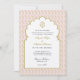 Elegant och enkelt Ganesh i en gyllene båge med guld och rosa paisley-bakgrundsinbjudan. Perfekt för Indiska bröllop.