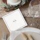 Perfect for cocktail hour, the reception bar, or dessert tables, these stylish napkins elevate your event décor while keeping the overall look effortlessly chic. The minimalist design blends seamlessly with a wide range of wedding color palettes and décor styles.